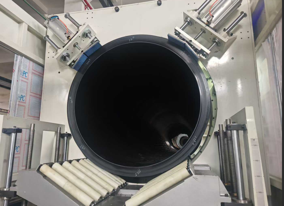 Ši ekstruzijos linijayra sukonfigūruotas su a120-40 vieno sraigto ekstruderissu naujausiomis tarptautinėmis technologijomis. Sraigto ilgio ir skersmens santykis 40:1 užtikrina tikslų temperatūros valdymą, vienodą plastifikaciją ir stabilų ekstruziją. Jo našumas viršija 2300 kg/val. Jis tinka įvairių žaliavų ekstruzijai ir gali gaminti didelio skersmens, itin storų sienelių vamzdžius vandens tiekimui ir branduolinei energijai.
